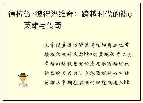 文章摘要:托尼·帕克,这位法国篮球名将,凭借其出色的球技与优雅的控卫风格,成为了全球篮球舞台的闪耀明星。他不仅仅是技术的代表,更展现了法国控卫特有的浪漫与风采。文章从多个方面详细探讨了托尼·帕克如何通过精湛的技巧、优雅的打法以及个性化的魅力,体现出法国篮球的独特魅力。首先,他在比赛中的控球艺术、敏捷的突破和精确的传球展现了法国控卫的技术特色。其次,托尼·帕克的比赛风格无疑是对法国浪漫情怀的表达,注...